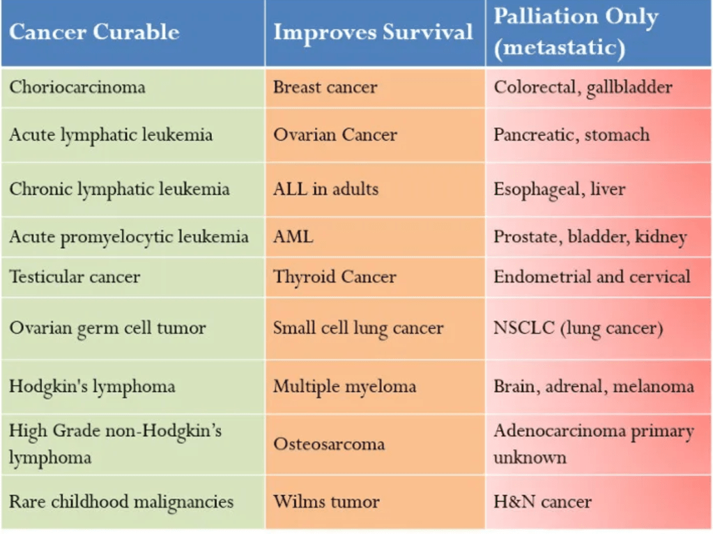 Traditional oncology identifies metastatic cancer as Palliation Only.